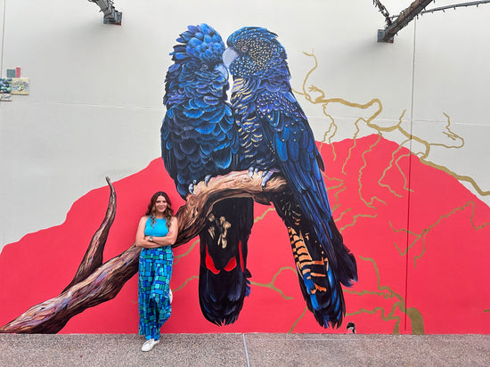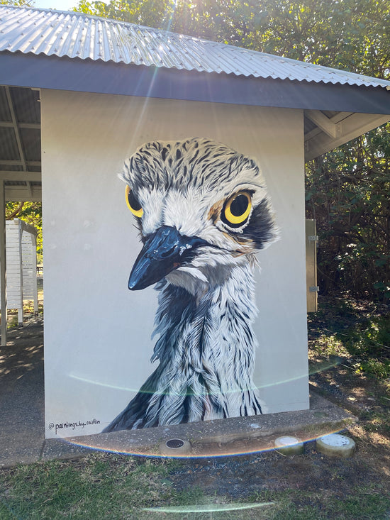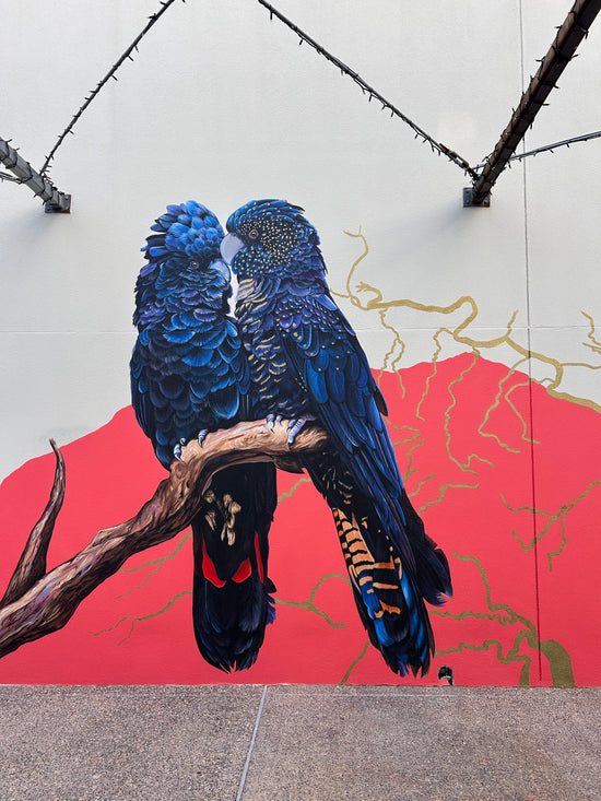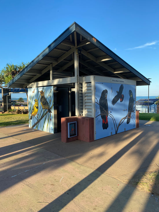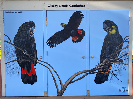 In December of 2022, Caitlin was again commissioned by Bird Life Capricorn to create a mural to bring awareness to endangered birds from the local area. This mural featured the glossy black cockatoo, and can be see on Yeppoon Main Beach.
