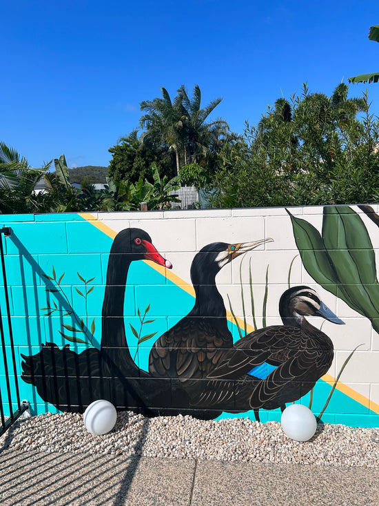 Completed in the Spring of 2023, this mural is on a private property in Mulambin.