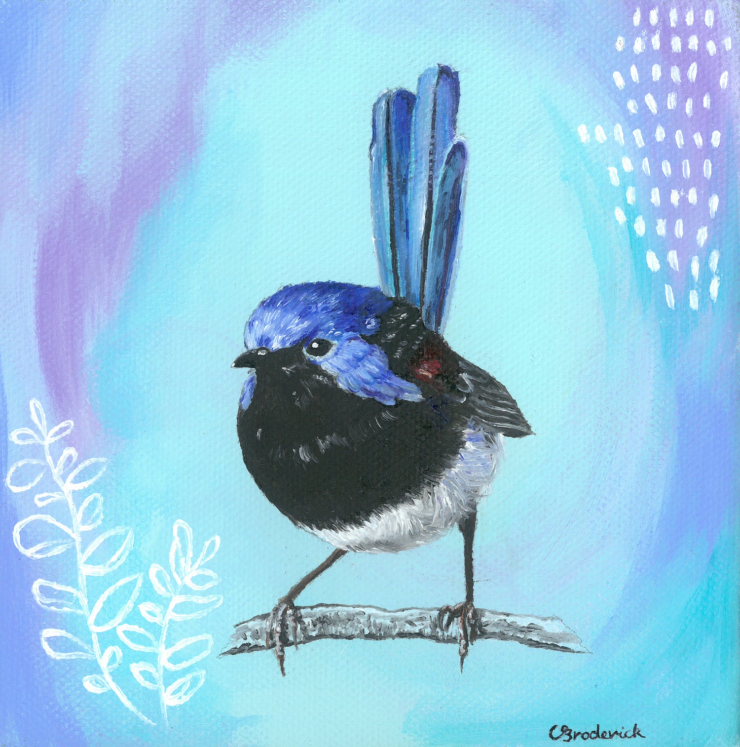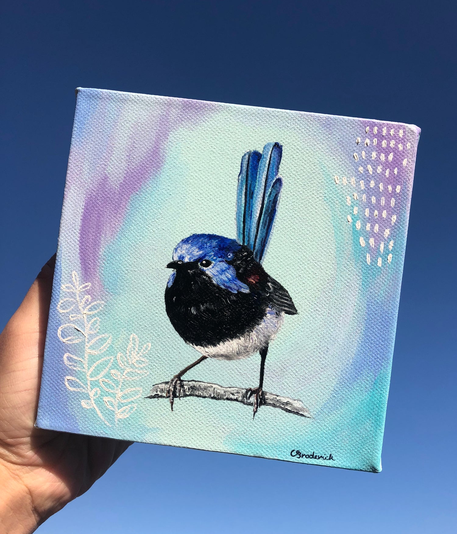 Inspired by Australia's beautiful and diverse nature, with a splash of abstract to immerse the fairy wren in a beautiful colour scheme.