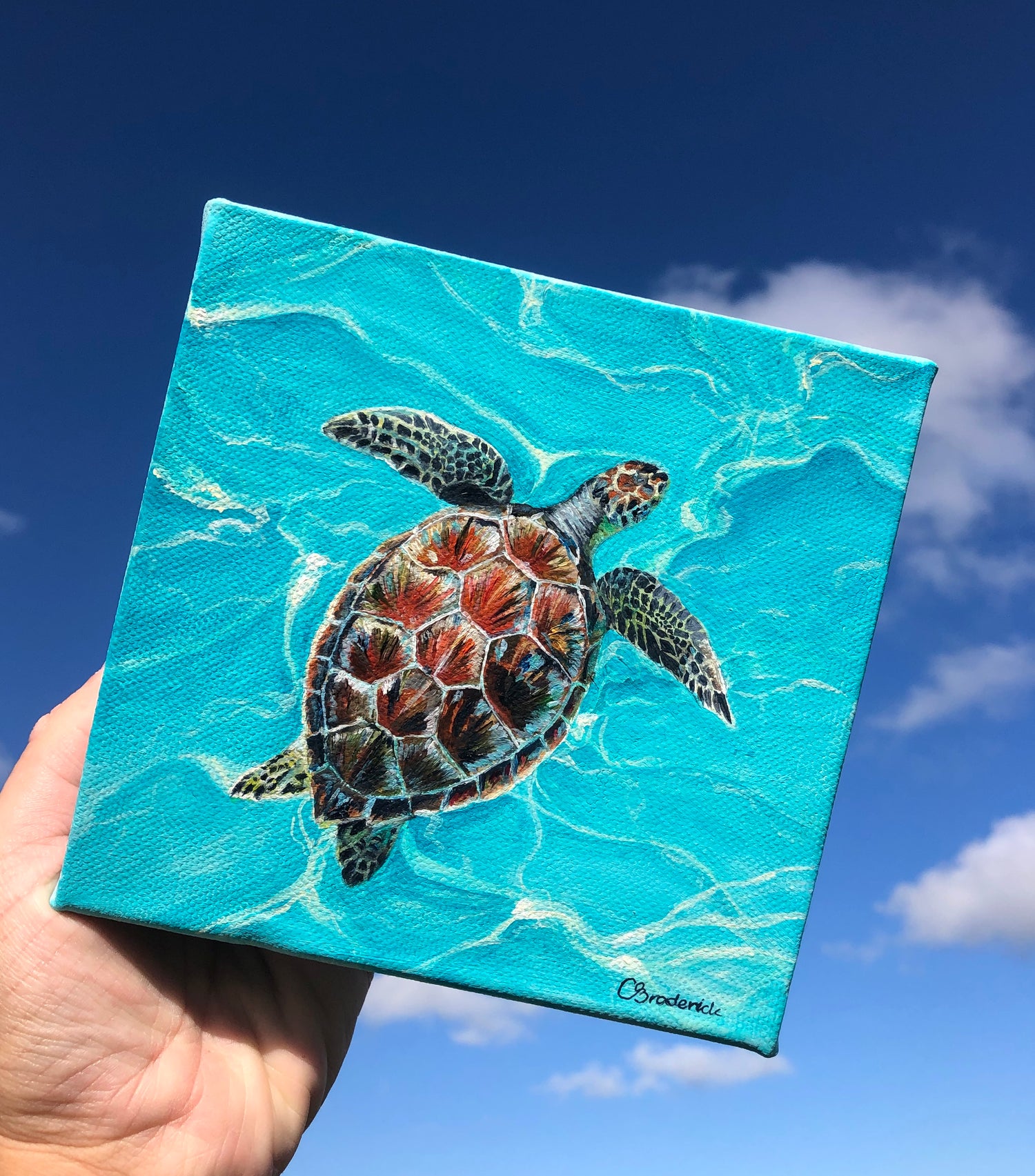 I love watching the turtles swimming along the shallow waters in the Capricorn Cays