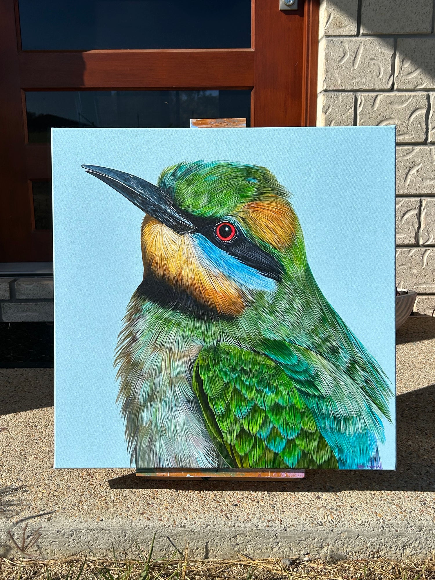 Introducing Bertie, the rainbow bee-eater. This little native Australian bird comes packed with some seriously funky colours and a personality to match! They've been on my painting to-do list for ages and he finally joins the native bird series. Bertie is sure to give your home a fun, energised boost, so buzz on in and let his fun colours brighten your home!