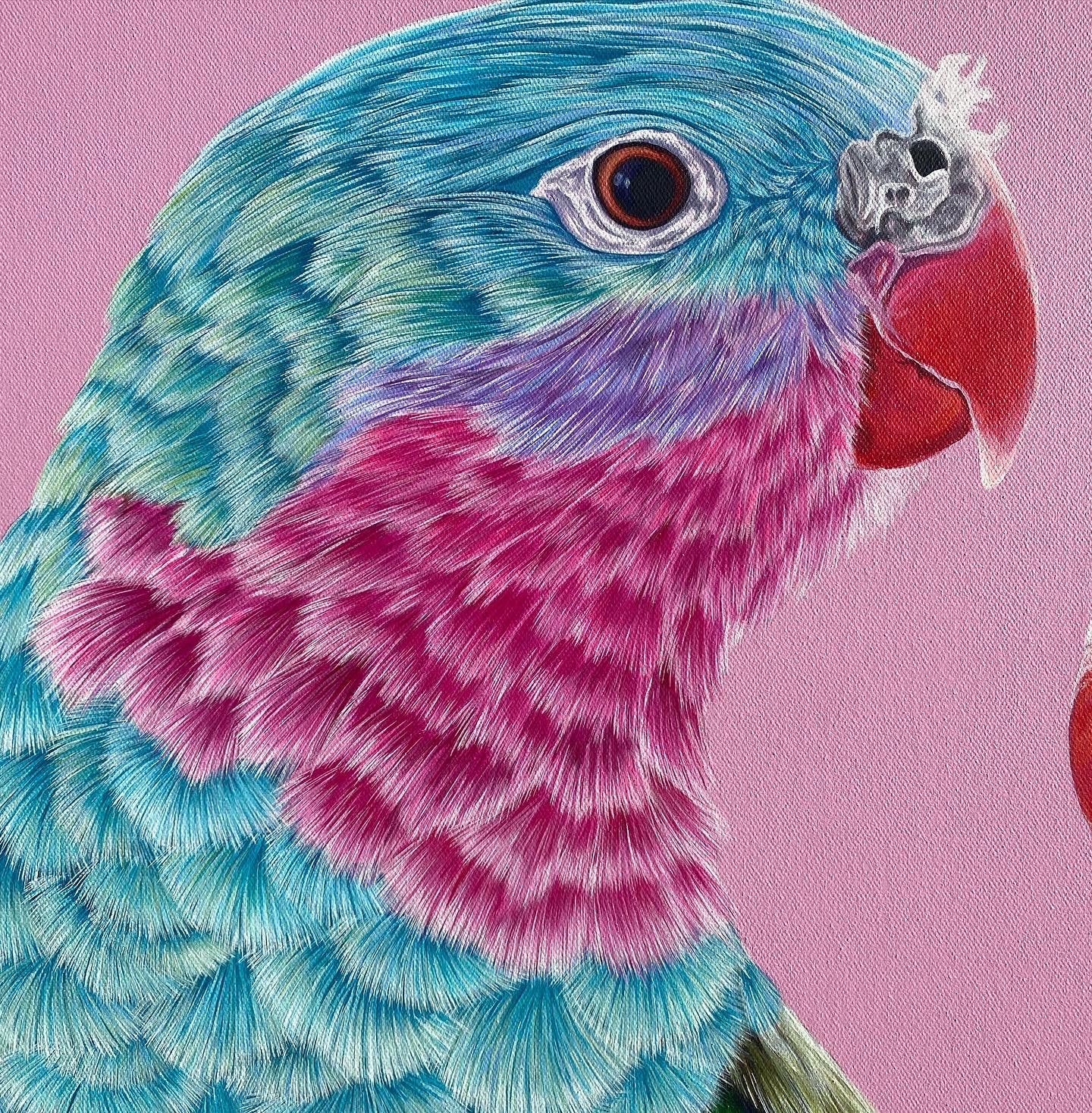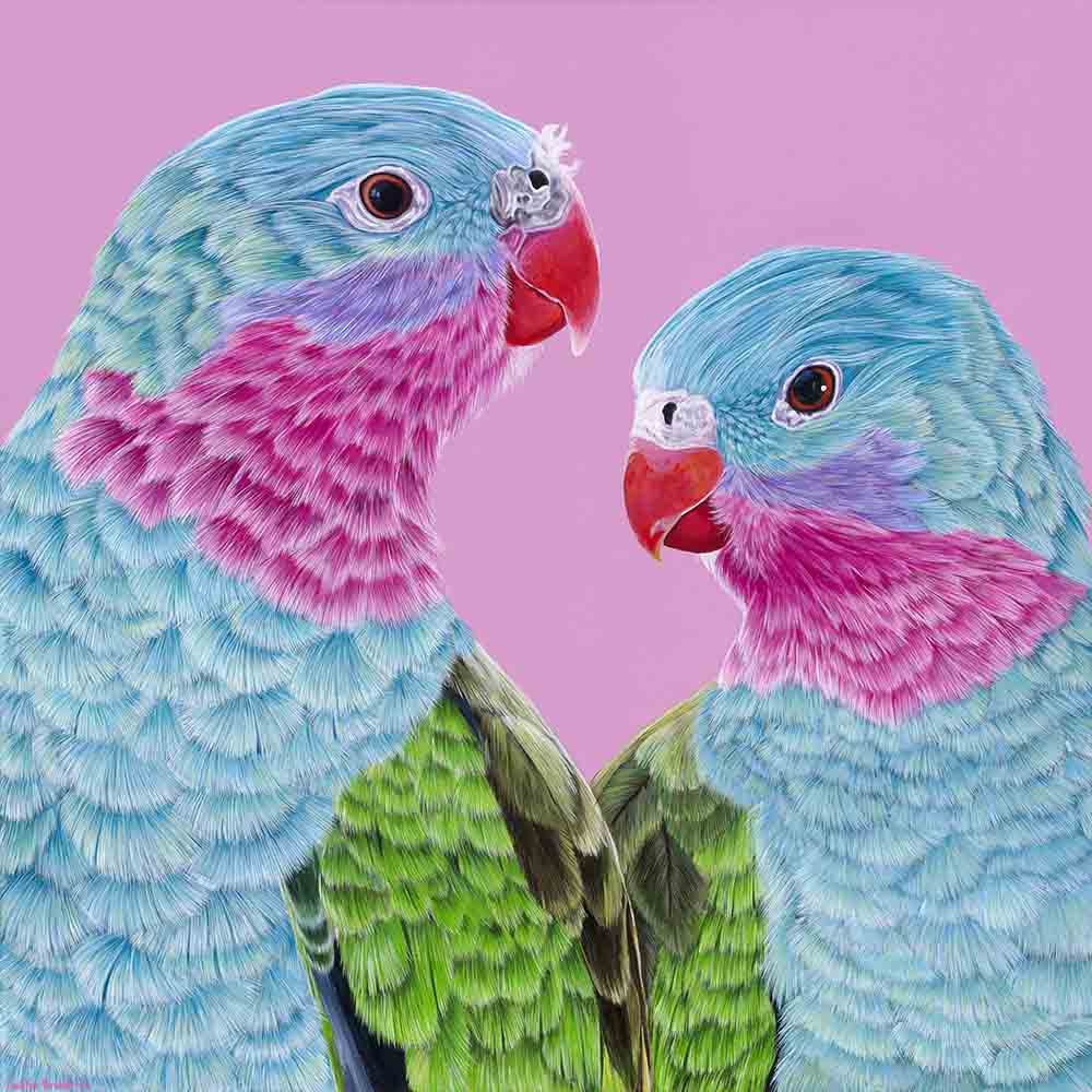I pulled out some of my brightest shades of paint for this pair and had so much fun playing with pops of blues, pinks and greens to create this painting.