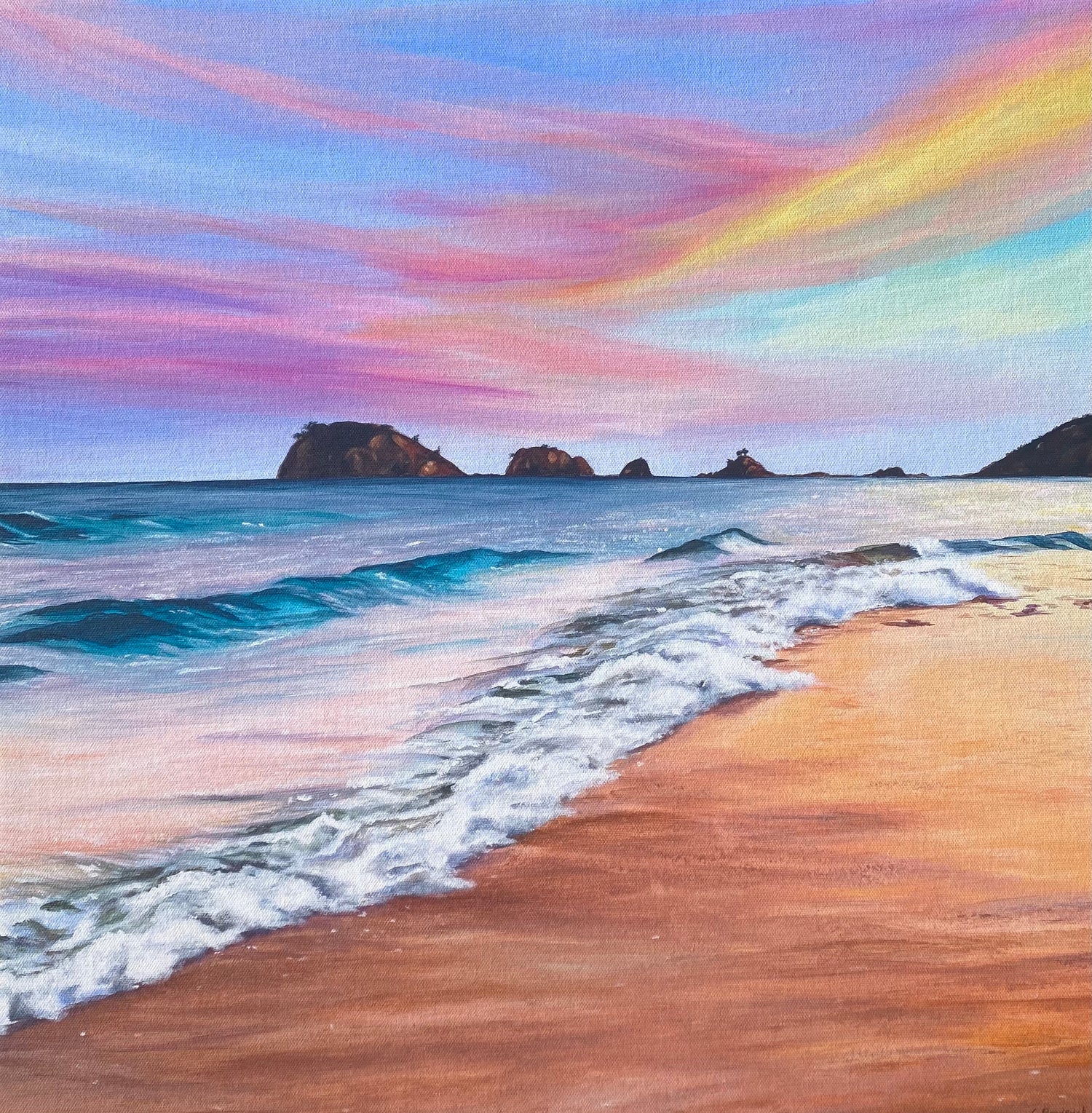 This painting was inspired by a golden sunset over Five Rocks one weekend.